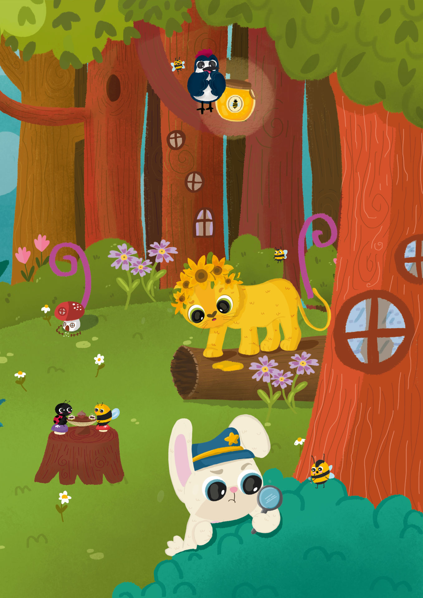 • Each page is a world to discover – look for the playful little bees and forest animals hiding in the details!
